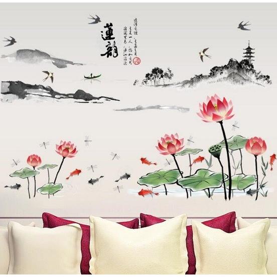 ウォールステッカー 水墨画 蓮の花 山岳 漢字 和風 壁紙シール 鯉 燕 アジアン お寺 池の葉 風景 送料無料 Sk9130 N M 通販 Yahoo ショッピング